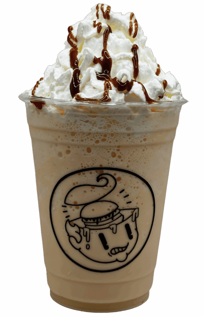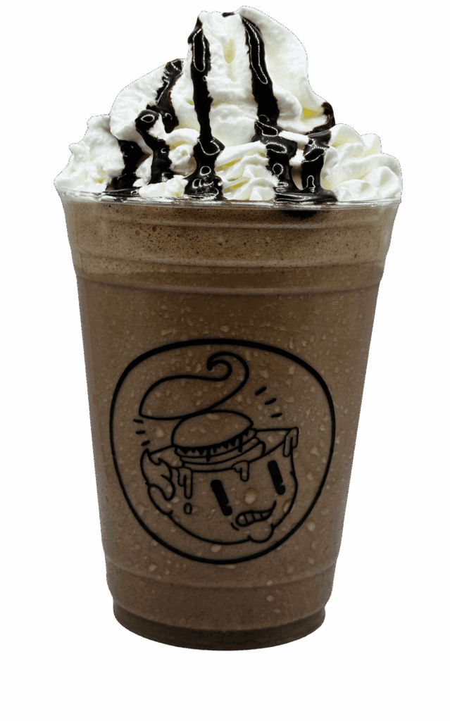 Cremosa malteada de helado de chocolate, acompañada de crema batida y jarabe de chocolate.