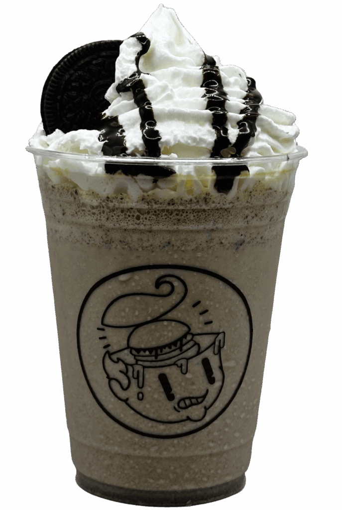 Cremosa malteada de helado de galleta Oreo®, acompañada de crema batida, jarabe de chocolate y galleta Oreo®