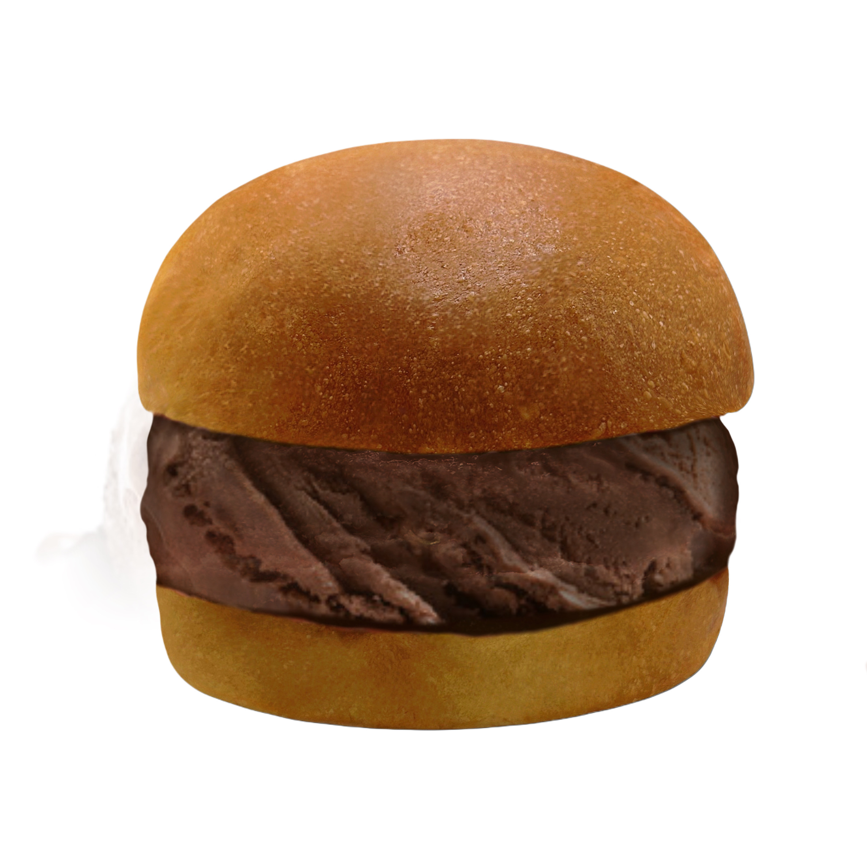 Helado cremoso de chocolate atrapado entre dos esponjosas rebanadas de pan con mantequilla.