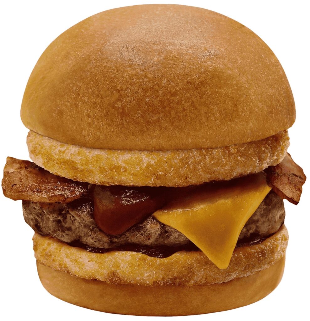 Deliciosa Beyond Beef®, queso americano y cebolla caramelizada, acompañada de nuestra deliciosa salsa secreta, entre dos esponjosos buns de papa.